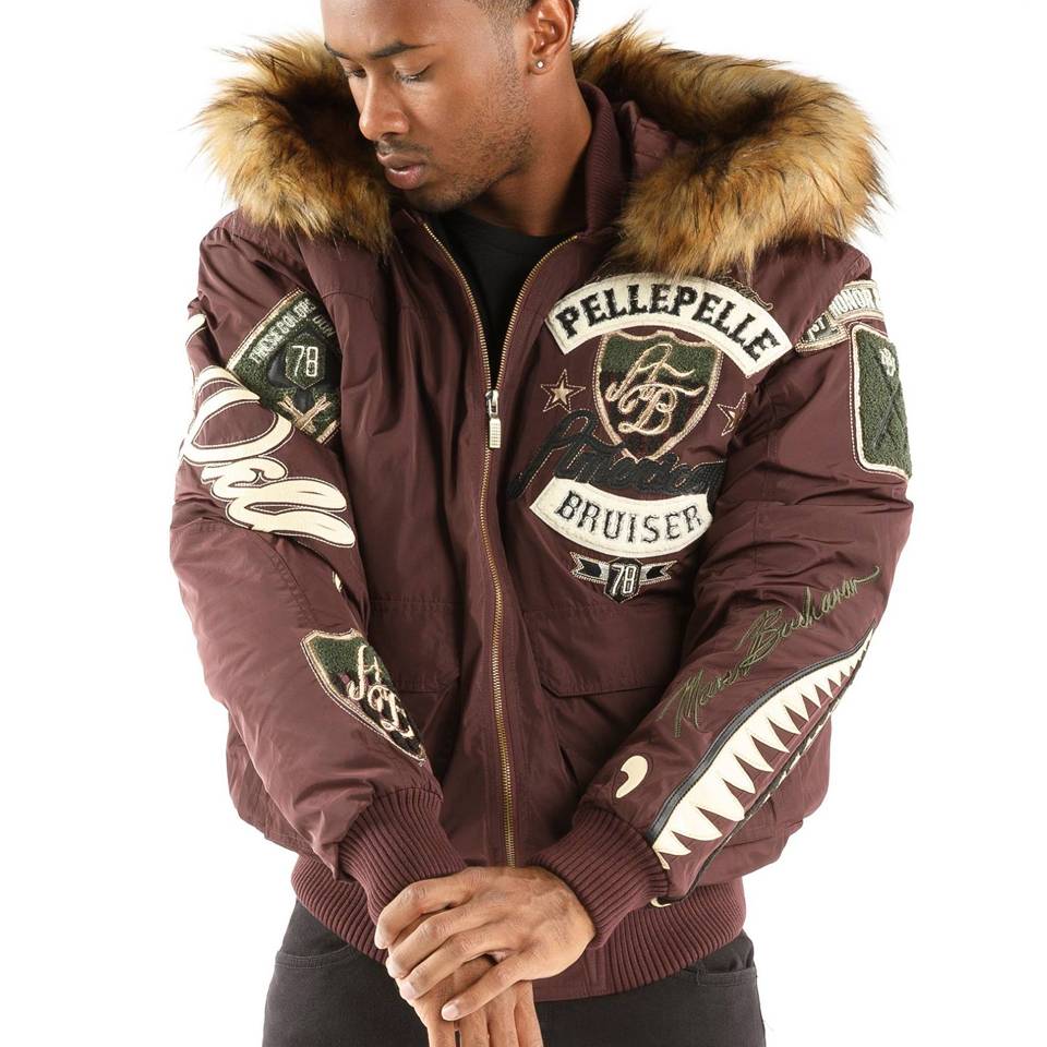 Men Pelle Pelle American Bruiser Brown Fur Hood Jacket