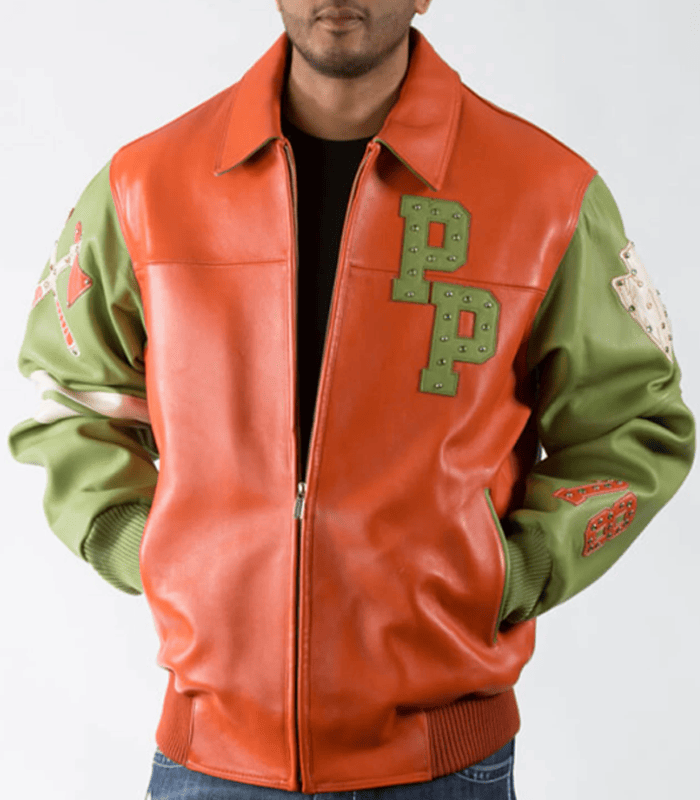 Mens Pelle Pelle Chief Keef Premium Orange and Green Leather Jacket