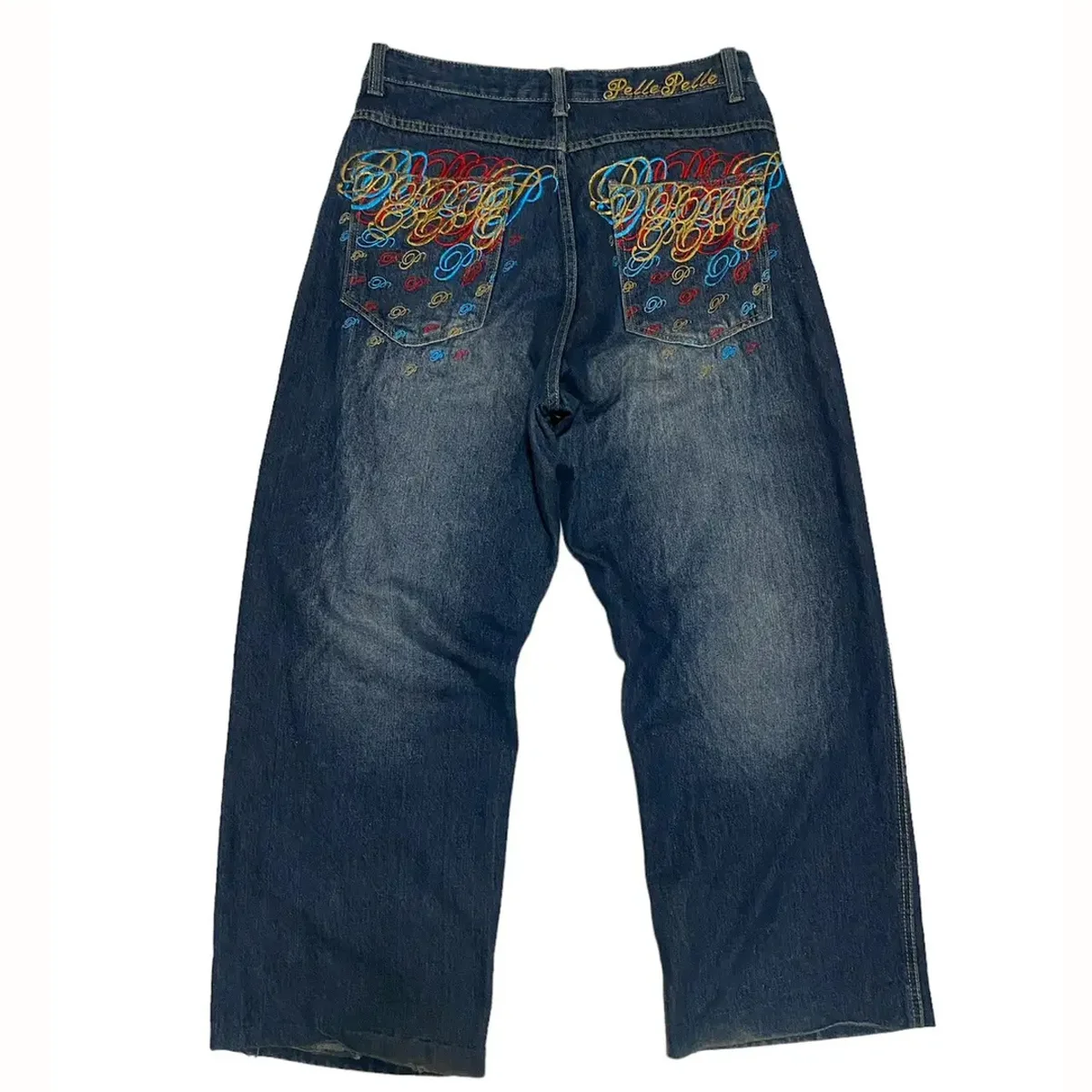 Pelle Pelle Multicolor Embroidered Blue Baggy Denim Jeans
