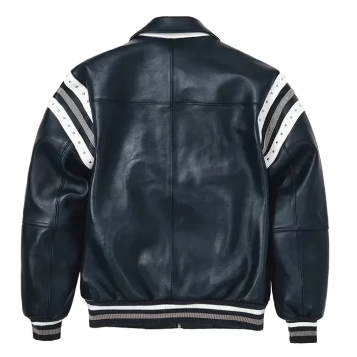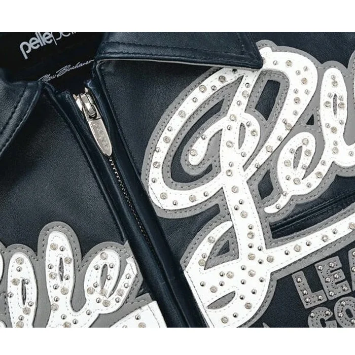 Pelle Pelle Encrusted Men Plush Navy Blue Varsity Leather Jacket