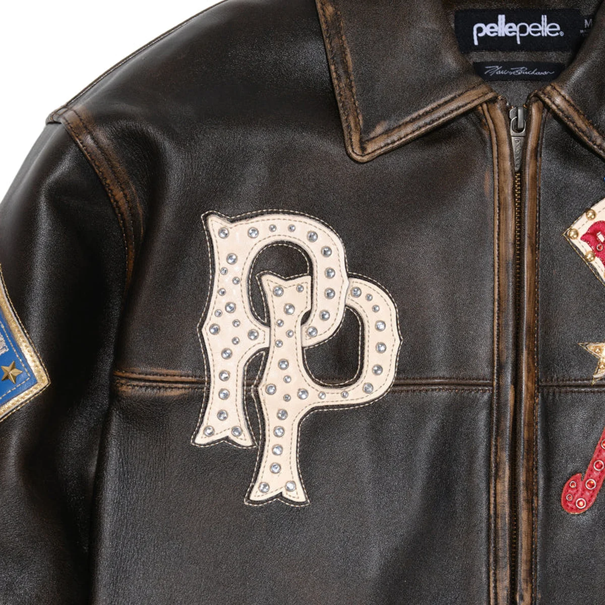 Pelle Pelle Marc Buchanan American Bruiser Mens Distress Dark Brown Leather Jacket