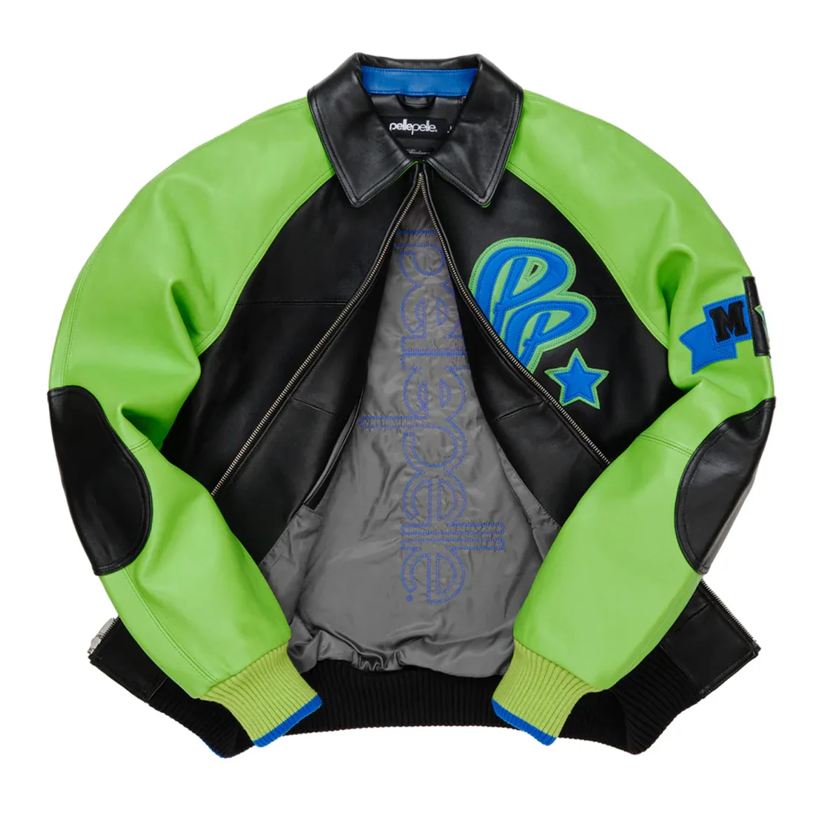 Pelle Pelle MB Soda Club Plush Black and Bright Green Leather Jacket