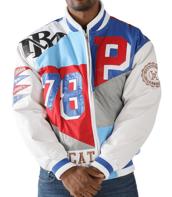 Pelle Pelle Mens White And Blue Slam Dunk Jacket