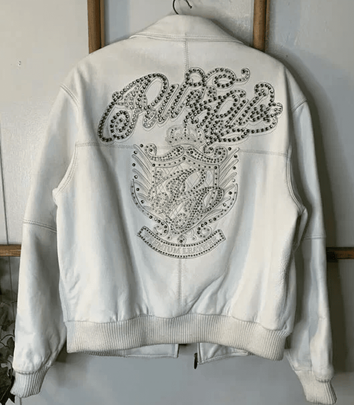Pelle Pelle White Stud Marc Buchanan Top Grain Leather Jacket