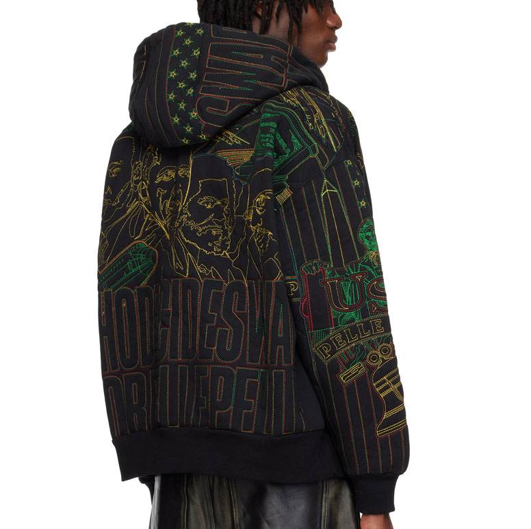 Men Pelle Pelle Who Decides War Black Cotton Hoodie
