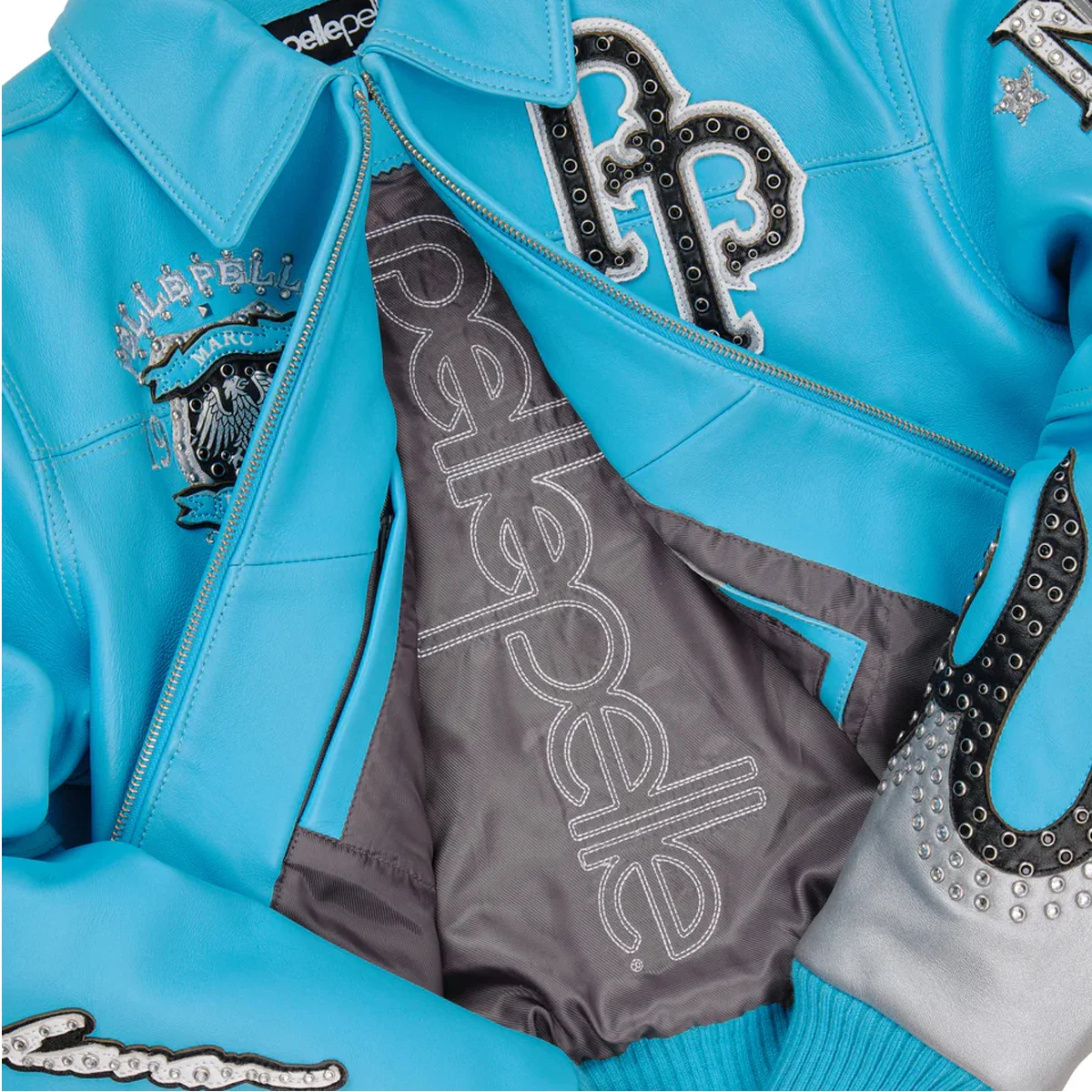 Women’s Pelle Pelle World Famous Marc Buchanan 1978 Studded Light Blue Crop Leather Jacket